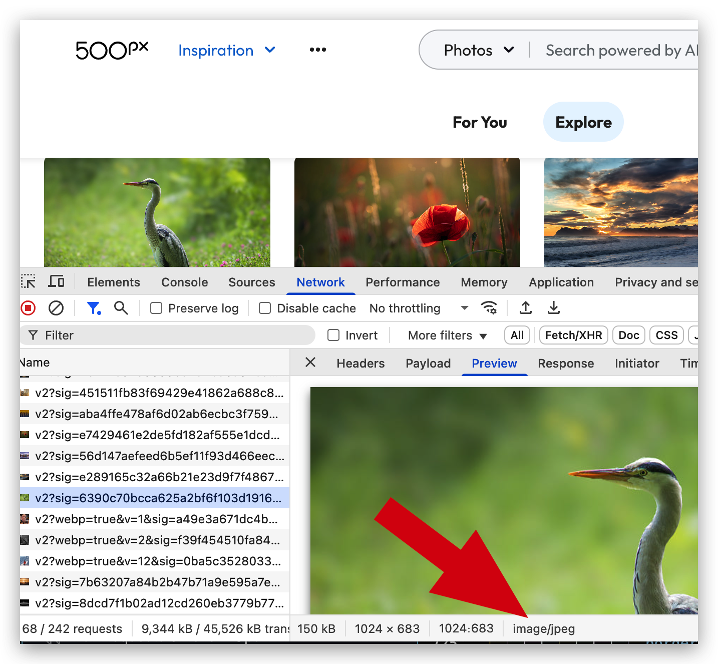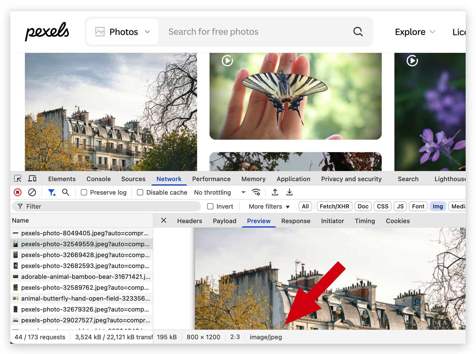 使用最广泛的照片格式,有损压缩,体积小,兼容性好,是目前大多数网页照片展示的首选格式。例如 500px 和 pexels。